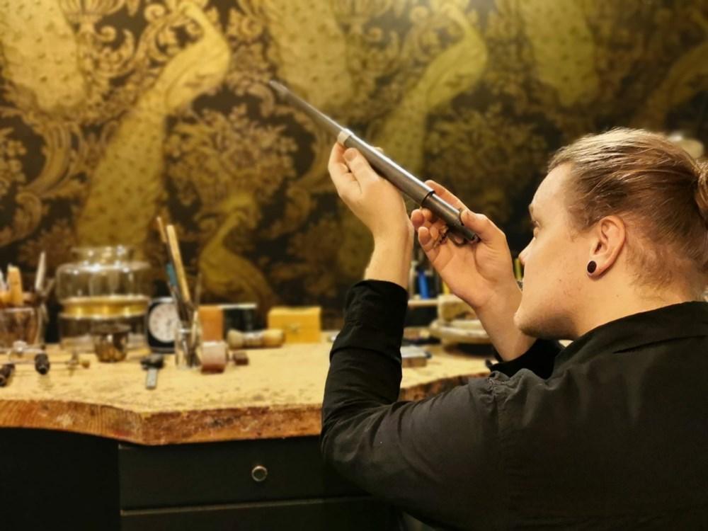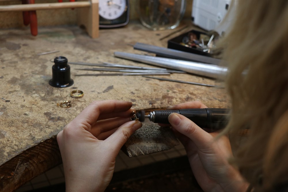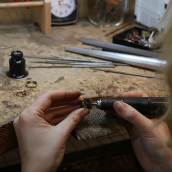 Reparationer utförs dagligen. I vår ateljé fattar vi också stenar, lagar smycken, ändrar ringar i storlek och mycket annat. Vi lagar allt från gamla ljusstakar till dyraste juvelringarna. I ateljén kan vi även gravera, exempelvis skyltar, tavlor, smycken, priser till tävlingar. Handgravyr och polering av smycken eller korpusföremål är också arbeten vi utför åt våra kunder. Många arbeten görs under tiden du väntar eller går ett ärende på stan.
