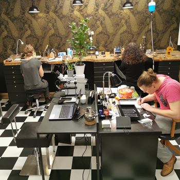 I ateljén arbetar vi även med egen tillverkning av smycken. Detta kan vara utifrån en design du själv tar fram eller i samarbete och samråd med våra guldsmeder.